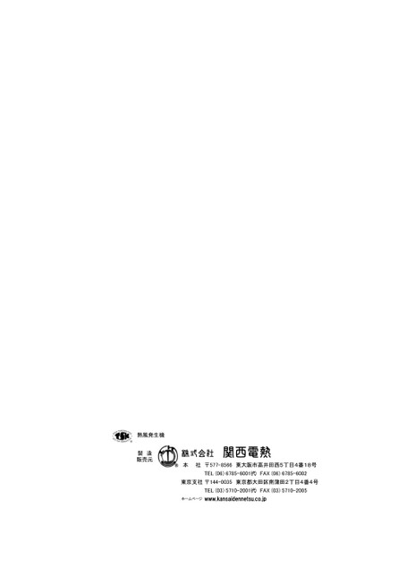 熱風発生機製造販売元本社〒577-8566東大阪市高井田西5丁目4番18号TEL(06)6785-6001㈹FAX(06)6785-6002東京支社〒144-0035東京都大田区南蒲田2丁目4番4号TEL(03)5710-2001㈹FAX(03)5710-2005ホームページwww.kansaidennetsu.co.jp