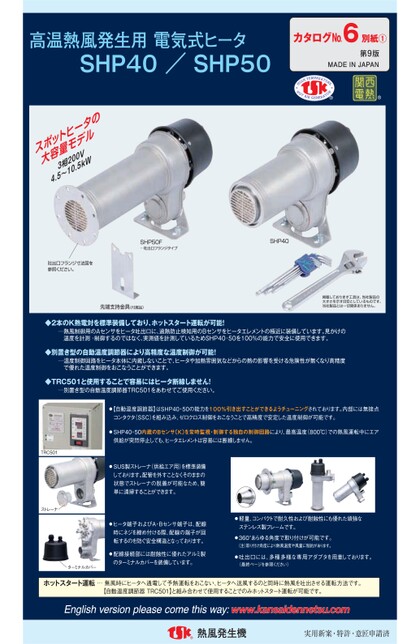 高温熱風発生用電気式ヒータ SHP40/SHP50